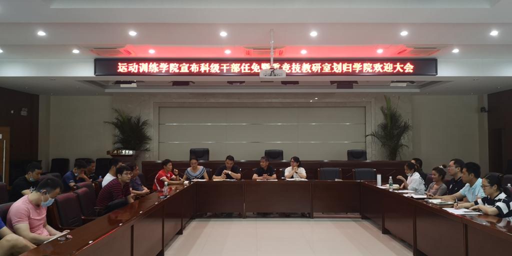 2020年6月24日15:00,运动训练学院在2号行政楼六楼会议室召开宣布科级干部任免暨重竞技教研室划归学院欢迎大会。学院科级以上干部、全体辅导员老师、新任科级干部、重竞技教研室及我院全体教师参加了本次会议,会议由王鑫书记主持。