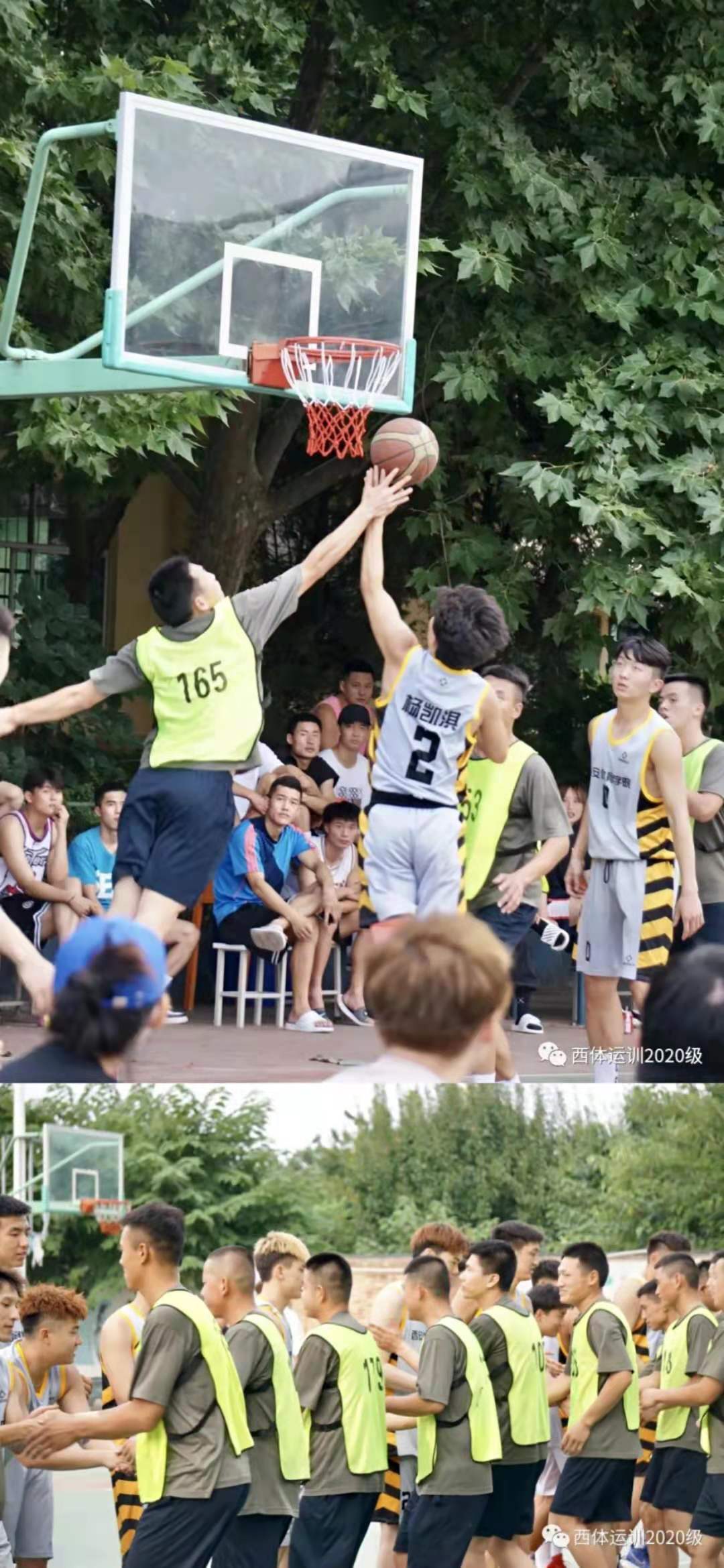 6月29日,喜迎建党100周年之际,我校运训20级师生与陆军渭南某通讯部队进行篮球友谊赛在室外篮球场地隆重举行。