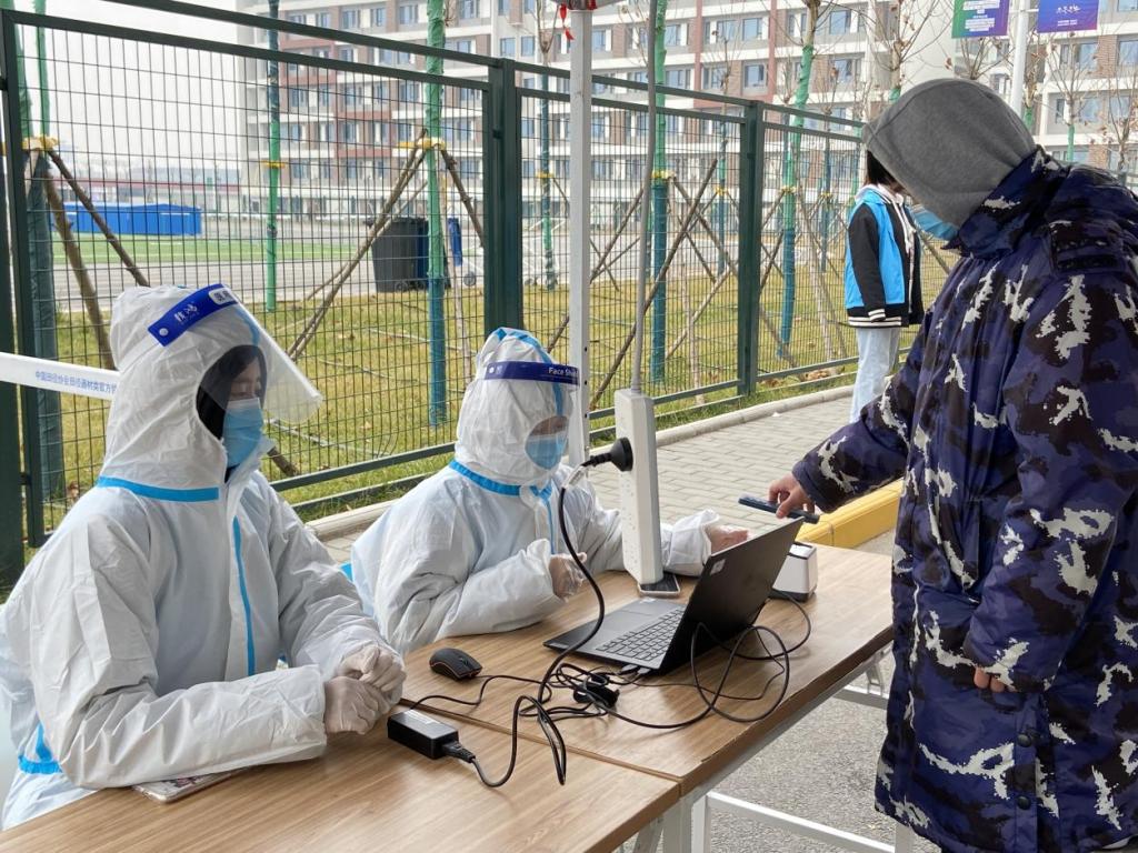 志愿者们在核酸检测现场忙碌