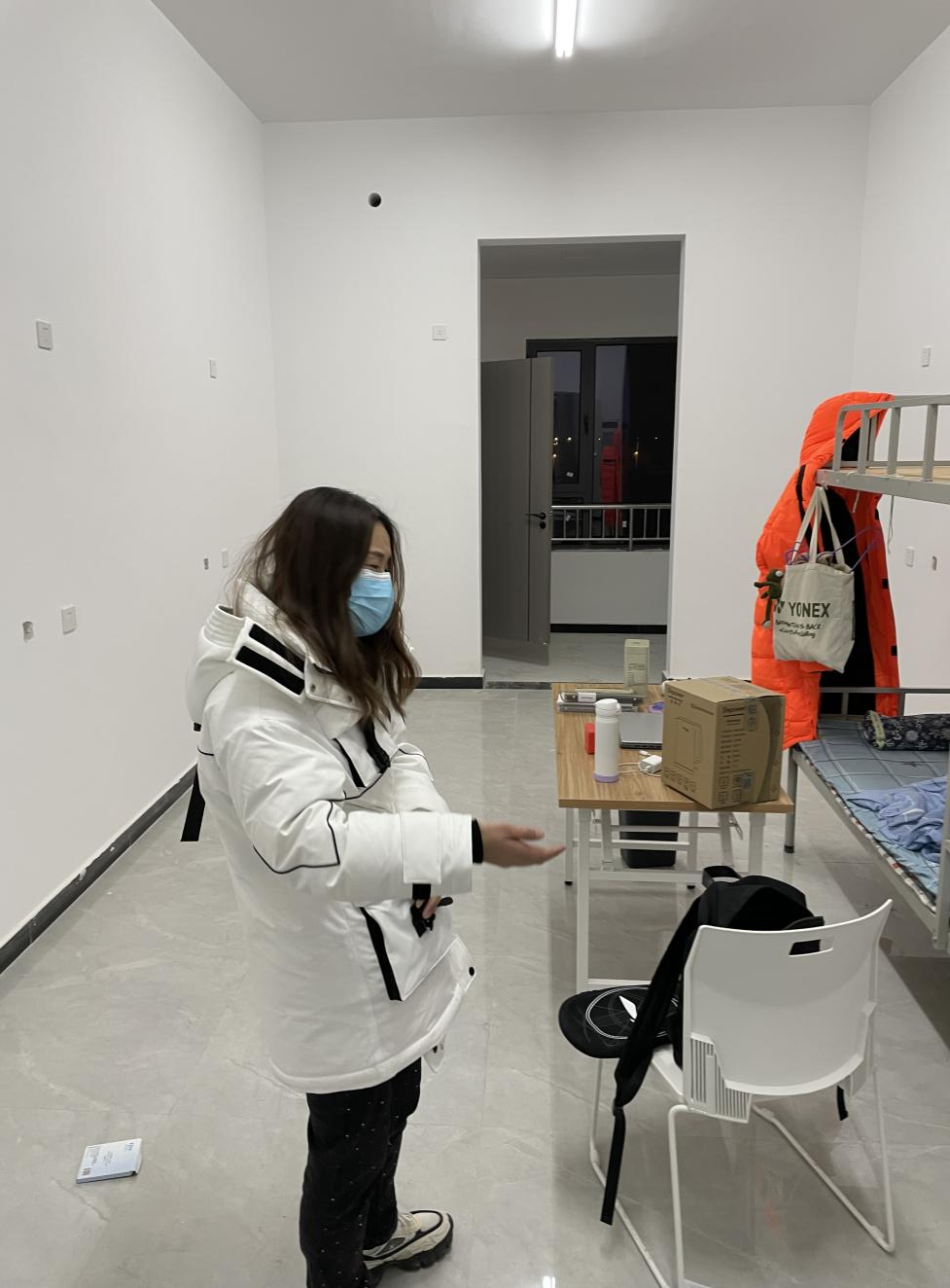 2020级年级主任雷璇检查隔离室前期布置工作