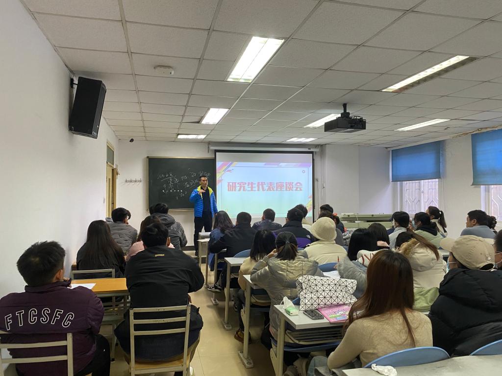 为进一步加强与研究生的联系,落实研究生奖助制度,保障和提升研究生育人环境,坚持推进三全育人工作制度化,并以日常精细化管理及各项评估为指导,及时修订完善国家级奖学金评审等制度。12月6日下午15:00在研究生楼109教室召开研究生代表座谈会。研究生部学工办主任郭运涛、辅导员权毅博和研究生3个年级各个研究方向及专项的45名研究生代表参加了此次座谈会。座谈会由辅导员权毅博主持。