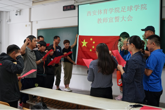 9月12日下午,足球学院在教学楼108教室举行西安体育学院教师宣誓大会。足球学院党总支书记姜梅,足球学院副院长席海龙,足球教研室副主任马俊以及全体足球教研室教师参加了会议,会议由姜梅主持。