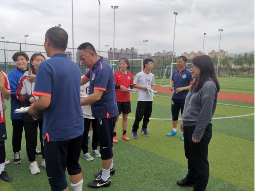 疫情缓和期间,足球学院老师选择与学生们共同拼搏,挥汗于足球场上,为足院学子们送来了口罩,并淳淳叮嘱学生们安全防控的重要性以及保持学习的重要性。