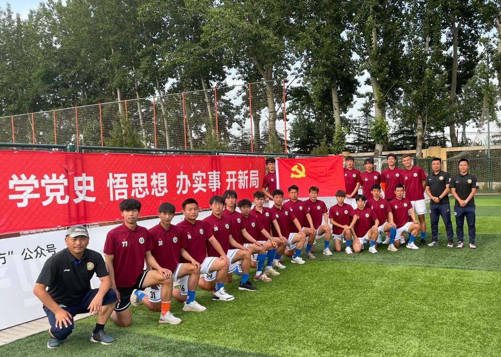 为深入推进党史学习教育,全面掀起学习党史的热潮、加强全体队员的思想政治素养,西安体育学院男子足球代表队在参加2021年全国青少年校园足球联赛(大学组)高水平男子乙级联赛期间,利用比赛休息日在山东鲁能足球基地开展“学党史 知党恩 跟党走”主题党日活动,一起重温党的百年历史。