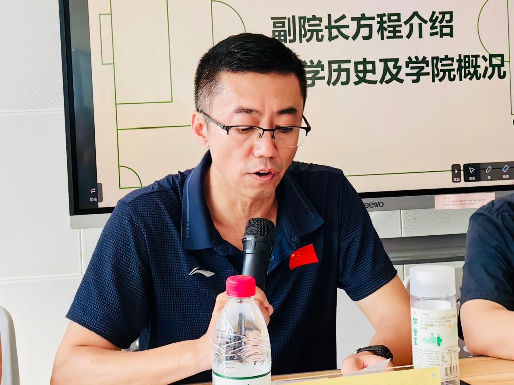 院长席海龙借用西安交通大学校长王树国在西安交大2023级本科生开学典礼上的讲话中提到的大学生活要完成“夯实知识基础、提升创新能力、培养坚韧不拔的毅力”三项任务,同我院人才培养目标相结合进行解读,鼓励新生坚持足球梦想,把家国情怀融入到不懈奋斗之中。