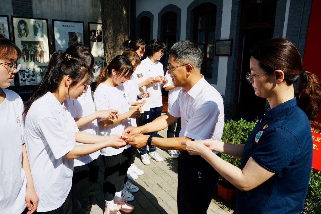 随后,正式党员代表为新发展党员佩戴党徽,全体党员面对党旗,重温入党誓词。鲜红的党旗擎起一颗颗赤诚的心,铮铮誓词凝聚起不忘初心的信念与力量。