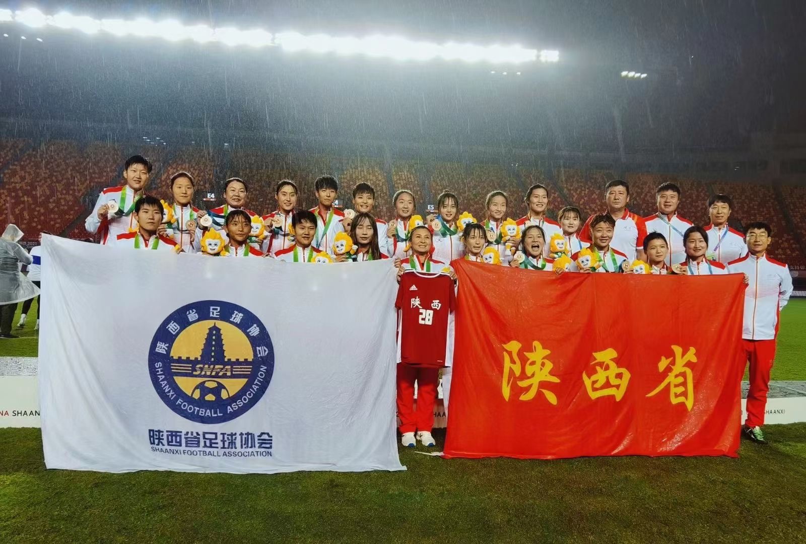 9月25日,第十四届全国运动会足球项目女子成年组比赛在陕西西安举行,我院学生杨柳、孙海淇、王晶晶、米艳妮、卢丽、张旖婷代表陕西队获得了铜牌。